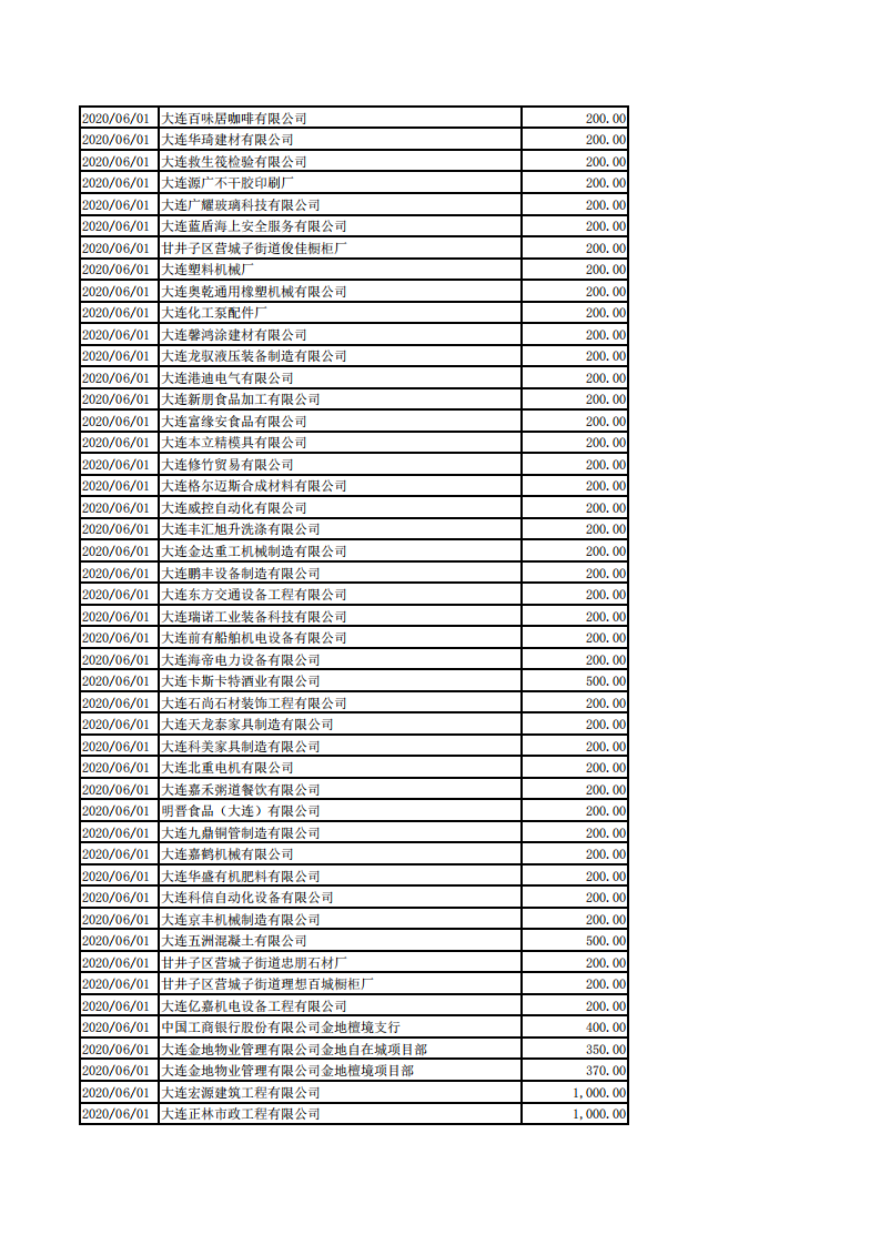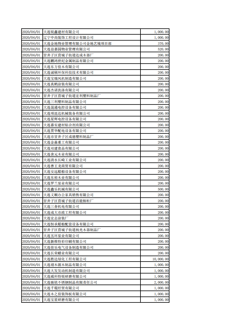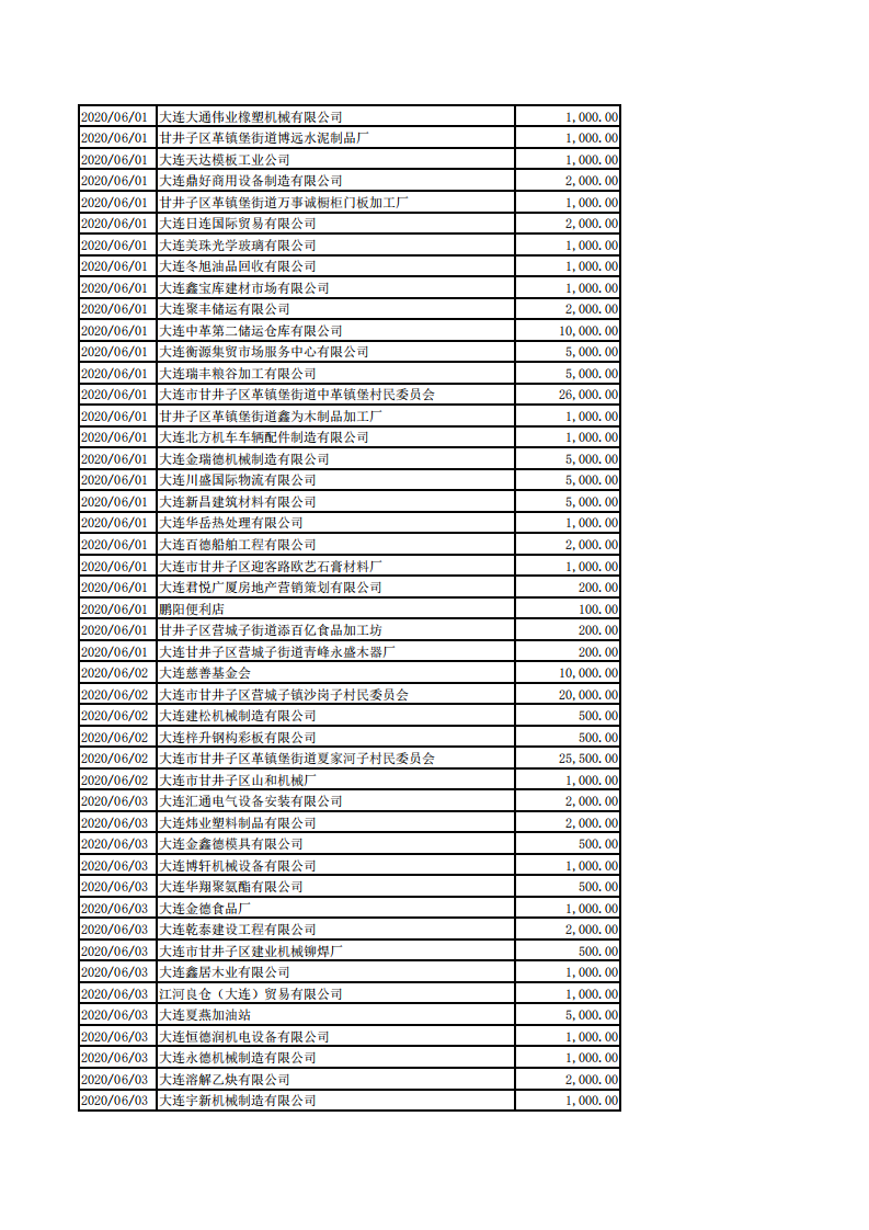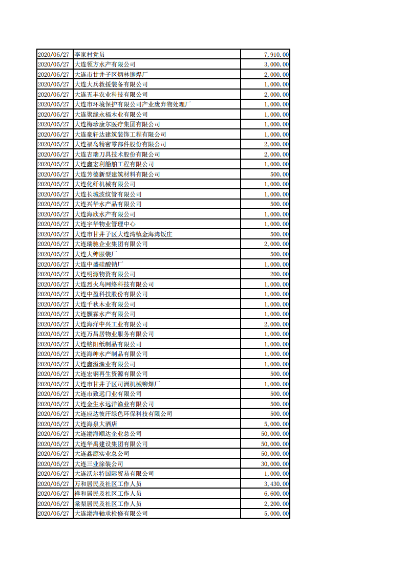 甘井子区慈善总会2020年1月1日-8月31日捐款情况